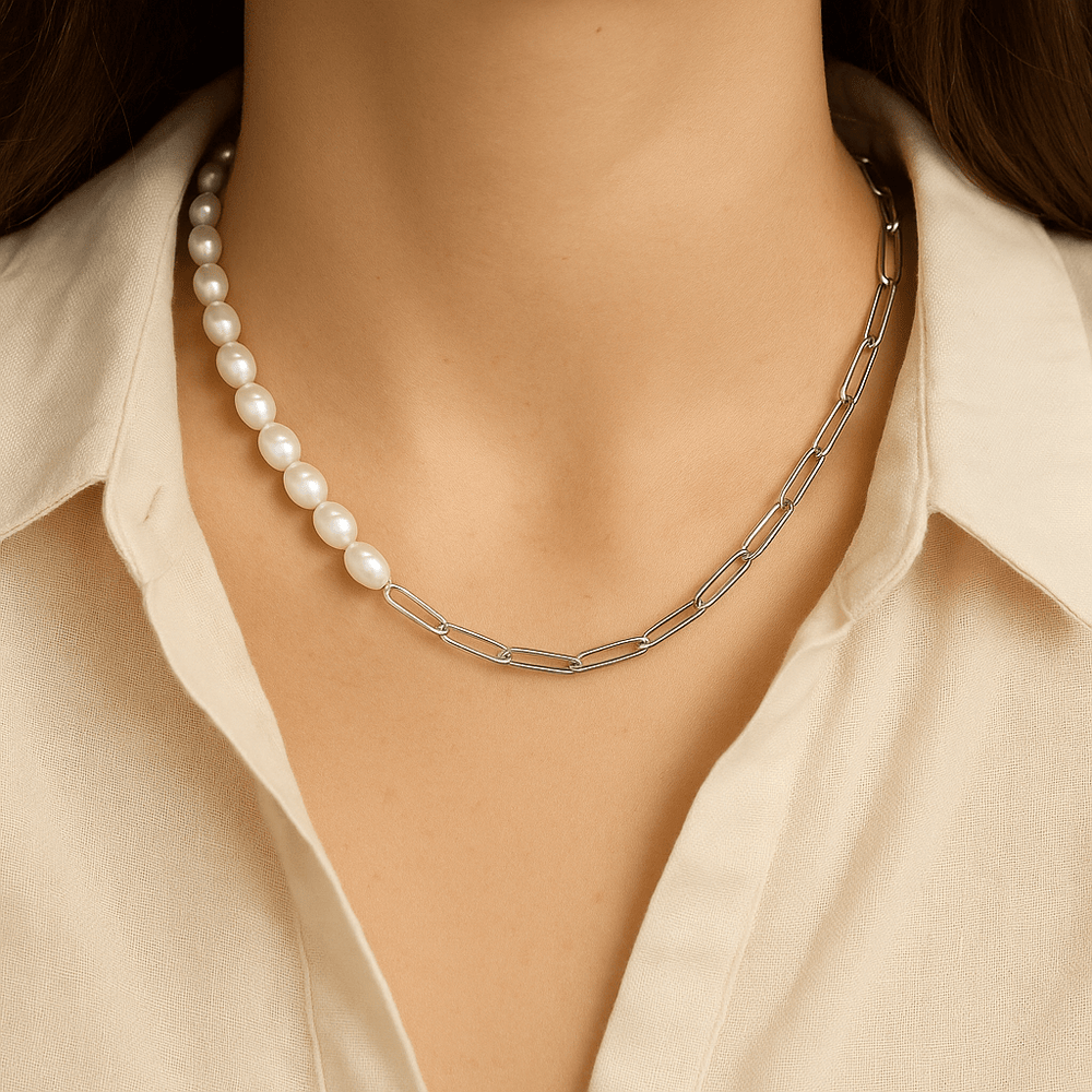 Ob Edelstahl, Titan, Silber oder Süßwasserperlen – unsere Materialien stehen für Langlebigkeit, Hautfreundlichkeit & Alltagstauglichkeit.
